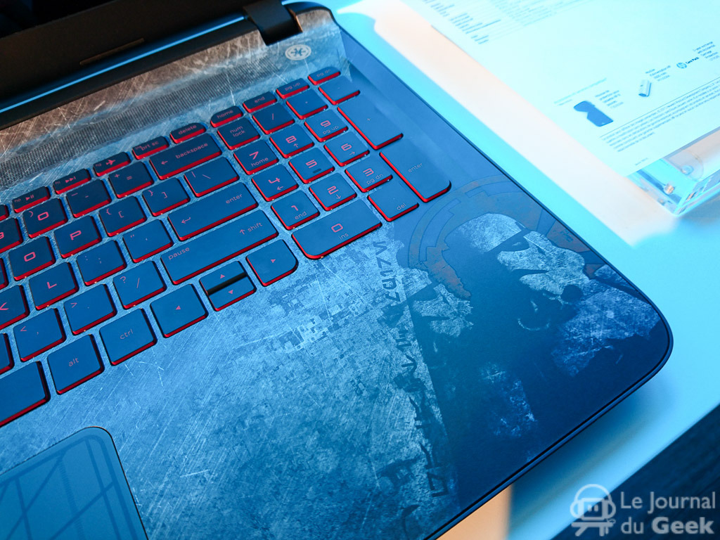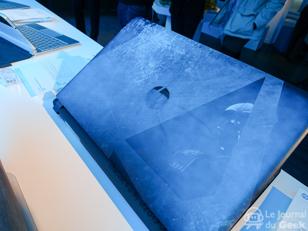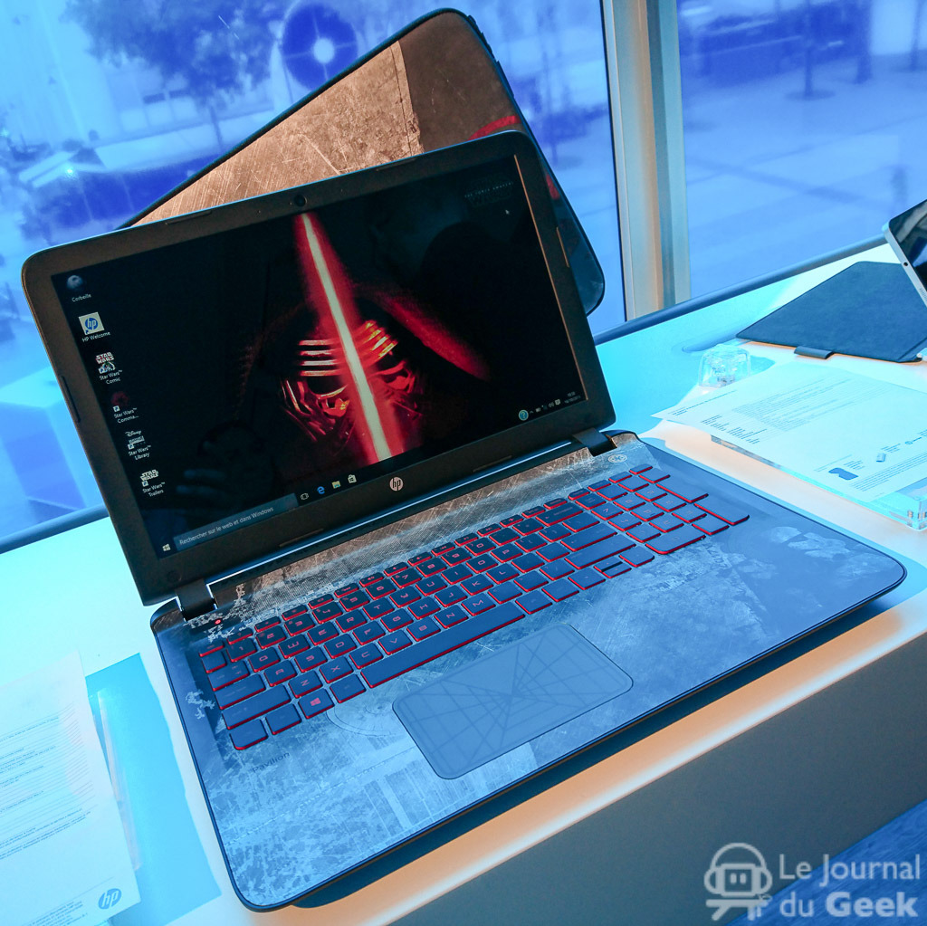 عدا هذا , و إلى جانب التّعديلات الفيزيائيّة , فإنّ جهاز HP هذا عرف أيضا بعض التّعديلات على المستوى التّقني , مثل الأيقونة المعتادة لسلّة المهملات الّتي وقع تعويضها بنجمة الموت . إعلموا أنّه على جهاز HP هذا , سيكون من الممكن حتّى شخصنة خلفيّة الشّاشة و صوتيّات الحاسوب بإستعمال صور من الحاسوب . فيما يخصّ المميّزات التّقنيّة , فسيكون هذا الحاسوب مجهّزا بشاشة عالية الجودة ذات15.6 بوصة مع خيار آخر خاصّ بالنّسخة الملمسيّة , إلى جانب معالج من intel 5 أو intel 7 من الجيل السّادس مرفق بمجموعة شرائح ( chipset ) غرافيكيّة ( HD graphic 520 ) أو بGe Force 940 كخيار إضافي . أخيرا , فيما يخصّ الذّاكرة , فيمكن لهذا الحاسوب أن يبلغ حدّ 2 TB كسعة تخزين و 12 GB كذاكرة عشوائيّة ( RAM ) , و الكلّ بسعة شحن تصل إلى 7 ساعات إلى جانب وجود مضخّمات صوت و قارئ للدّيسكات .