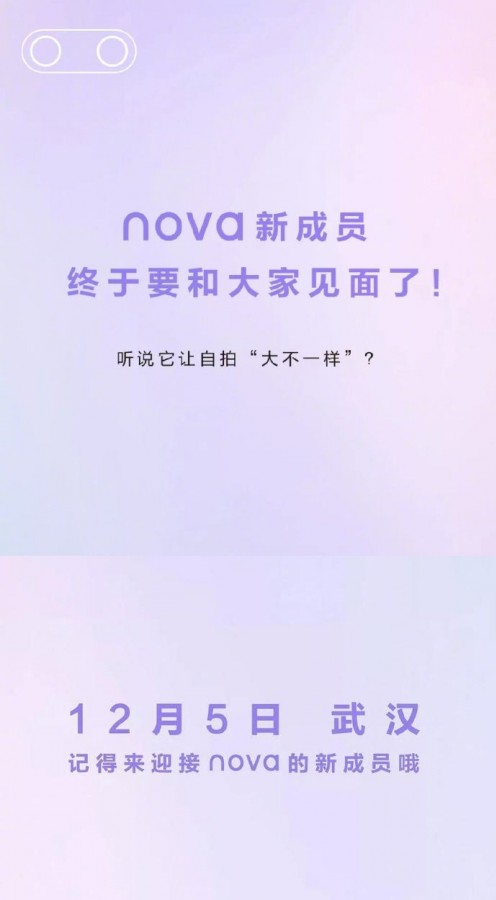 كشفت شركة هواوي المصنعة للهواتف الذكية اليوم عبر صفحتها الرسمية على موقع التواصل الإجتماعي Weibo بأنها ستعلن في 5 من شهر ديسمبر القادم عن هاتفها Nova 6.
