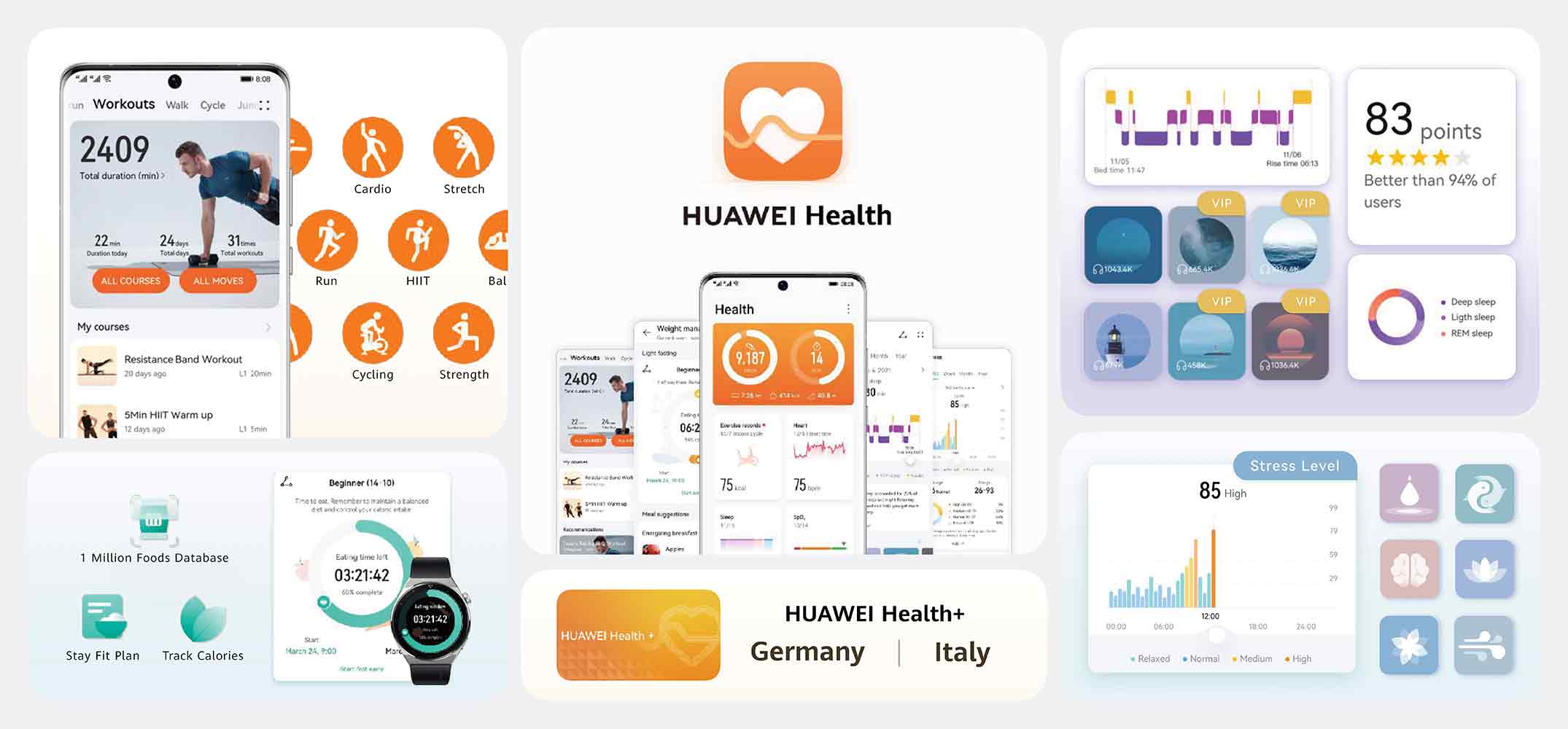 يغطي تطبيق HUAWEI Health App جميع جوانب أسلوب الحياة الصحي، بما في ذلك اللياقة والتغذية والعافية. يمكن للمستخدمين الاستمتاع بمجموعة واسعة من ميزات تطبيق HUAWEI Health App للحفاظ على لياقتهم البدنية والعقلية. مع HUAWEI Health App+، تقدم هواوي خدمة اشتراك مدفوعة جديدة للمستخدمين الذين يبحثون عن المزيد من ميزات الصحة واللياقة البدنية المتقدمة. سيتم إطلاق HUAWEI Health App+ أولاً في ألمانيا وإيطاليا.