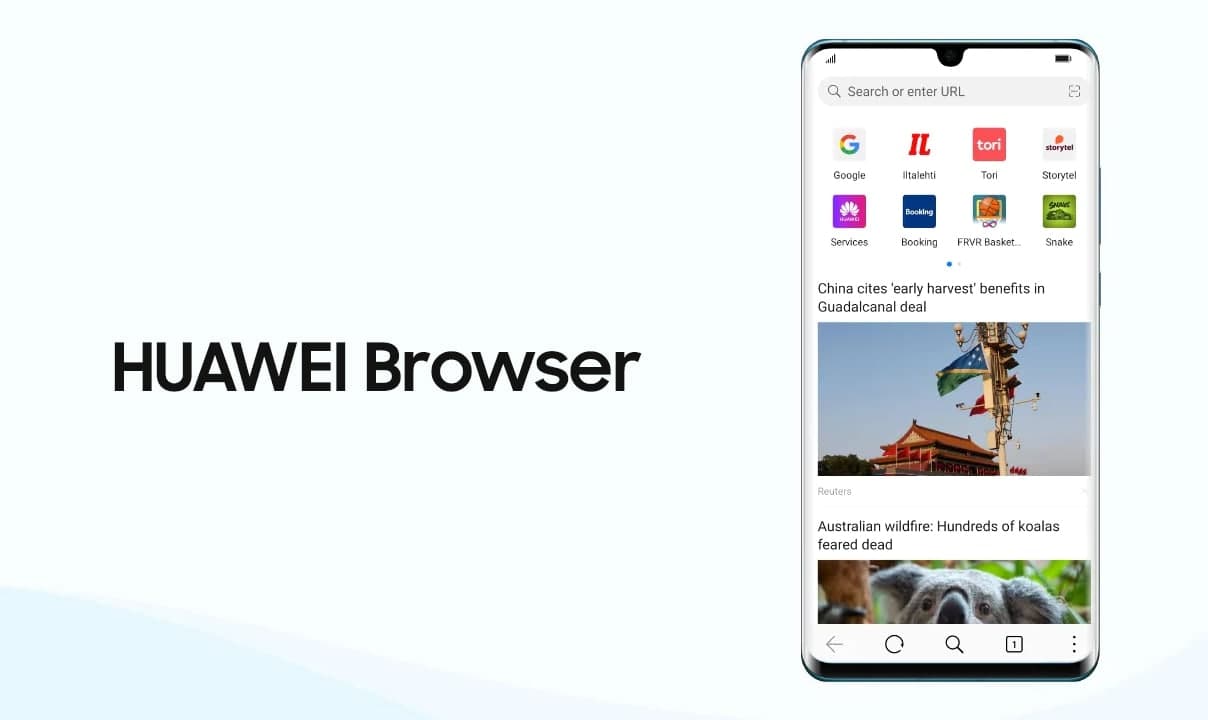 علما وأنها تمتلك تطبيق Huawei Browser بهواتفها الذكية يمكن من إجراء عمليات بحث فورية وتصفح الويب بسرعة فائقة واستخدام الوضع الليلي وتحسين التصفح الخاص واستخدام كلمات المرور المحفوظة.