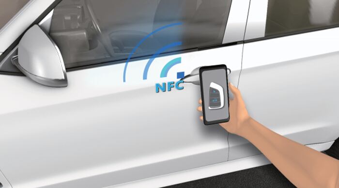 بمجرد الانتهاء من إعداد الأشياء، يمكنك فتح قفل السيارة عن طريق النقر بهاتفك على مقبض الباب. وإذا كانت السيارة تحتوي على قاعدة شحن لاسلكية، فيمكنك وضع الهاتف هناك والضغط على زر البدء لبدء تشغيل السيارة.