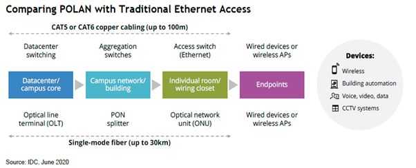 اليوم ، يعيد صانعو القرار في مجال تكنولوجيا المعلومات حول العالم التفكير في استراتيجيات الشبكات الداخلية ، مع تسارع التحول الرقمي لمواجهة وباء. مقارنة مع الحلول التقليدية، يوفر حل شبكة البصرية (POL) مزايا من حيث النطاق الترددي والتشغيل والصيانة واستهلاك الطاقة والتكلفة الإجمالية للملكية (TCO) . على مدى السنوات الخمس المقبلة، سيتم استخدام POL على نطاق واسع في مختلف الصناعات وستصبح أساسًا متينًا لإعادة التفكير في خدمات الشركات.