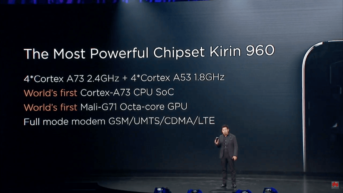 | SoC | Kirin 960 : Octa-core (4×2.4 GHz Cortex-A73 & 4×1.8 GHz Cortex-A53) |