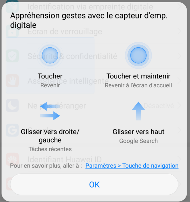 في الواقع, يقدّم لكم هاتف Huawei P10 وضعيّتين إثنتين, حيث يمكنكم إظهار الأزرار “النّظاميّة” ( Button Système) على الشّاشة , تماما مثل الهواتف الذّكيّة الأخرى من هواوي. و في هذه الحالة, لا ينفع الزّرّ الملمسيّ إلّا لوظيفة قارئ البصمات. أمّا الوضعيّة الثّانية, فهي تمكّنكم من إستعمال الزّرّ الملمسيّ مثل وحدة ال”Track lad” الّتي تفتح قائمة الوظائف المتعدّدة (multi-taches) , و العودة إلى الخلف, و زرّ الإستقبال الرّئيسيّ و بطبيعة الحال قارئ البصمات الرّقميّة.