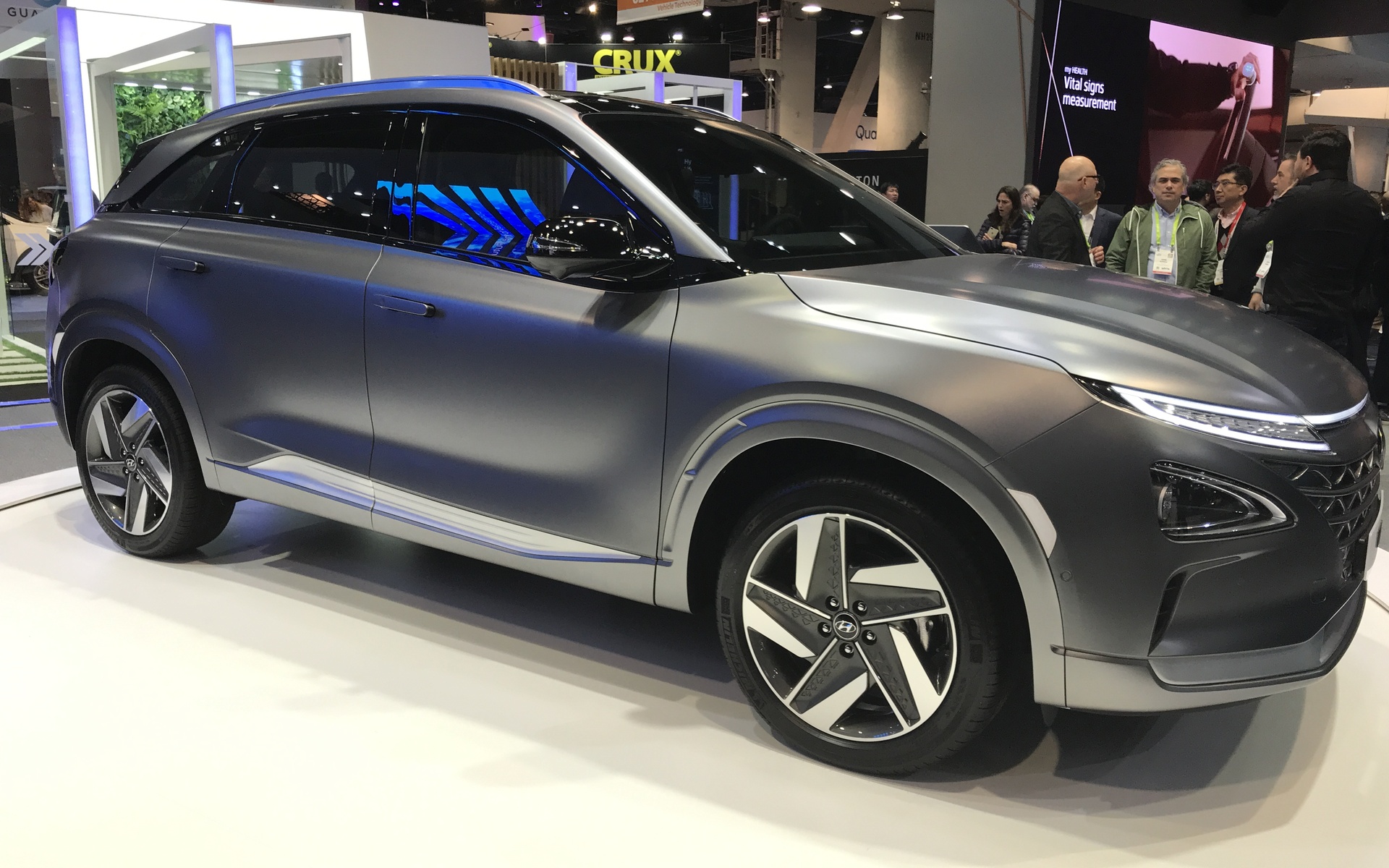 عرضت هيونداي في منطقة خاصة على جناحها في معرض الإلكترونيات الاستهلاكية رؤيتها للحياة الهيدروجينية، وهي رؤية ترمي إلى إنشاء مجتمع يستمد الطاقة في حياته المعيشية من الهيدروجين. وعرضت الشركة في منطقة العرض هذه سيارة نيكسو تزوّد منزلاً نموذجياً بالطاقة الكهربائية، لإظهار قدرة نظام الحركة القائم على خلايا الوقود في السيارة على الوصول إلى ما هو أبعد من الاستخدام التقليدي المتمثل بالقيادة. أبرز جناح هيونداي أيضاً قدرة نيكسو على إتاحة مياه نقية لزراعة النباتات، نظراً لأن نظام توليد الطاقة من خلايا الوقود لا ينبعث منه سوى المياه فقط (على شكل بخار) كناتج ثانوي عن عملية توليد الطاقة، ما يجعل المركبة تتميز بالقدرة على إنتاج المياه لاستخدامات متعددة، في حين أن أقصى ما يمكن للمركبات التقليدية العاملة بمحركات احتراق داخلي فعله هو تقليل الانبعاثات.