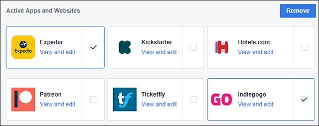 في كثير من الأحيان، لا يمكن اختراق حسابك من قبل شخص عادي وإنما تكون قد منحت حق الوصول إلى تطبيق ضار قام بالاستيلاء على حسابك. لإزالة التطبيقات المشبوهة، انتقل إلى الإعدادات > التطبيقات ومواقع الويب، انقر على عرض الكل على جميع التطبيقات ومواقع الويب النشطة. عيّن علامة اختيار على التطبيقات أو مواقع الويب التي تريد إزالتها، وانقر على زرّ الإزالة في الجزء العلوي. وتأكد أيضا أنّك تريد حذف جميع المشاركات، والصور، ومقاطع الفيديو على فيسبوك من هذه المصادر. بدل ذلك، انقر على الرابط عرض وتعديل وقم بتغيير أذونات التطبيق، والتي تتضمّن خيارات مثل رؤية التطبيق والوصول إلى معلوماتك الشخصية والإجراءات التي يمكن اتخاذها.