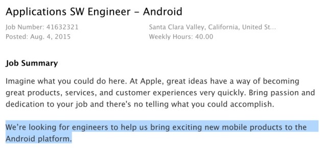 بالرّغم من أنّ هذا قد يبدو مفاجئا و غريبا بالنّسبة لكم , فآبل بالفعل تبحث عن مطوّر برمجيّات للعمل على أندرويد .