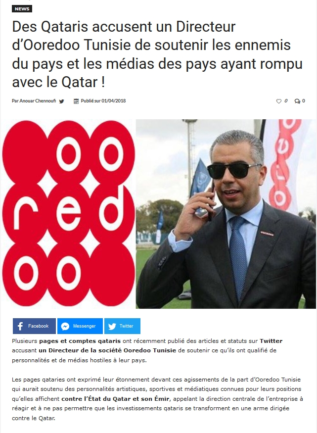 على إثر نشر موقع Tunivisions يوم 01 أفريل 2018 مقالا، بإمضاء المدعو أنور الشنوفي، ألحق الضرر بسمعة الشركة ومسّ من شرف أحد المسؤولين لديها، رفعت شركة Ooredoo تونس أمام المحكمة الإبتدائية بتونس قضيّة موضوعها التشهير والثلب ضدّ شركة Media Visions Editing المالكة لهذا الموقع ومحرّر المقال.
