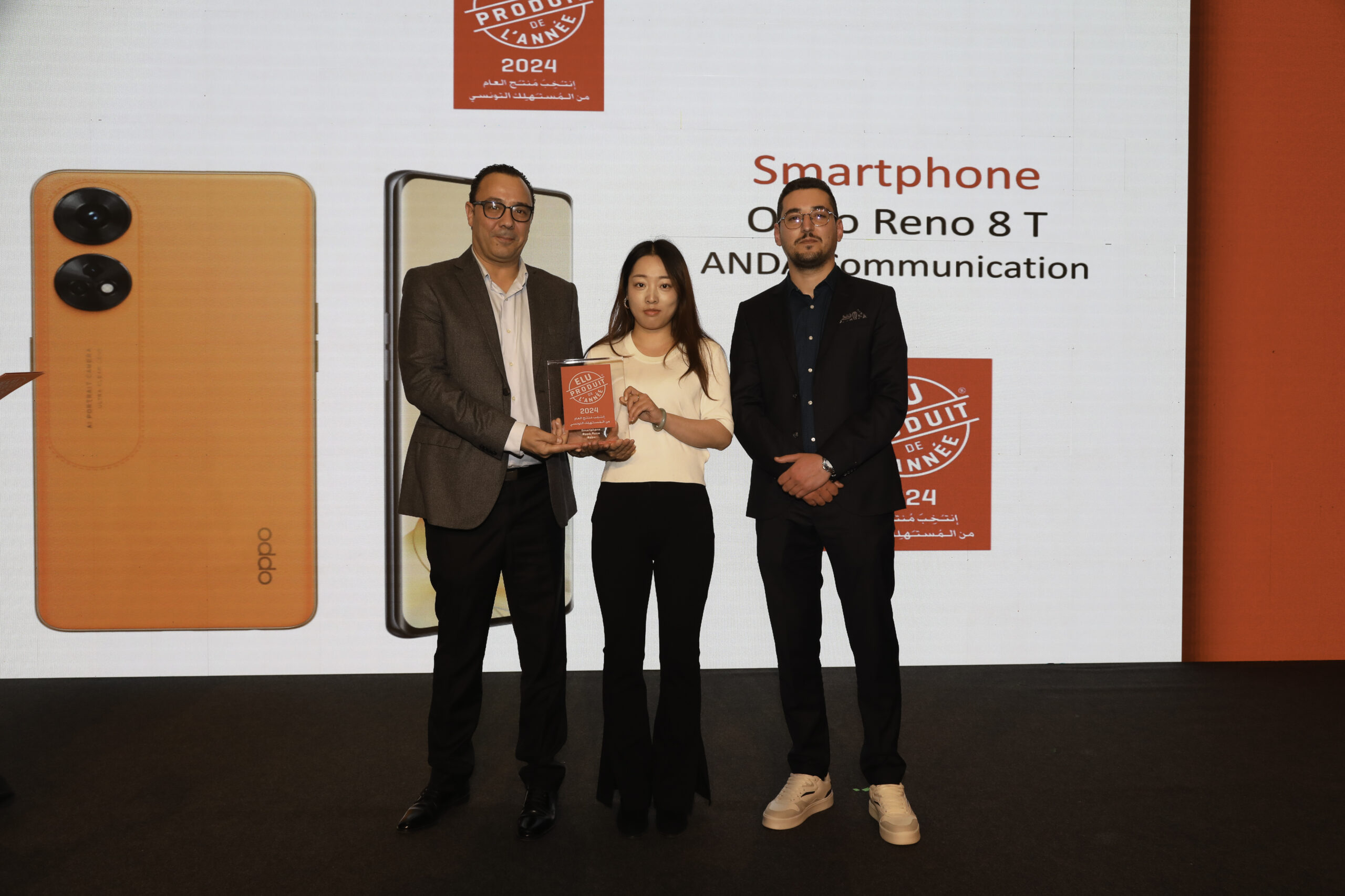 فازت OPPO تونس بشعار “انتخب منتوج العام 2024” في فئة الهواتف الذكيّة عن سلسلتها الشّهيرة Reno، وذلك خلال حفل توزيع جوائز EPA الذي تم تنظيمه في تونس في 28 فيفري 2024.